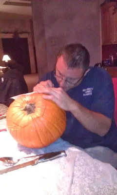 I think I did a pretty good job at carving my grim reaper. Without a doubt I won against that bat-cat-creppy-dragon thing. I have visited a few websites looking for good ideas. I'll share my favorite ones. Let me know what you think. I have to win again this year. It helps when you have a good solid pumpkin to start with. Pumpkin carving tools help, you can also use silver wear, or whatever tools you have in the garage. I might include my Milwaukee Tools this year. By the way, you should enjoy a home made pumpkin pie or pecan pie while carving pumpkins. It makes it all better.