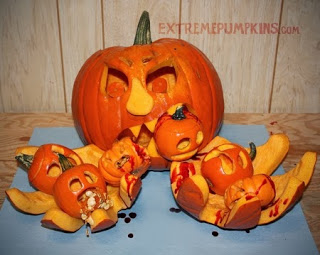 I know this one isn't really considered as pumpkin carving. It looks cool, I would want to put this in front of my house. I can just imagine how nasty it would get after a few days.