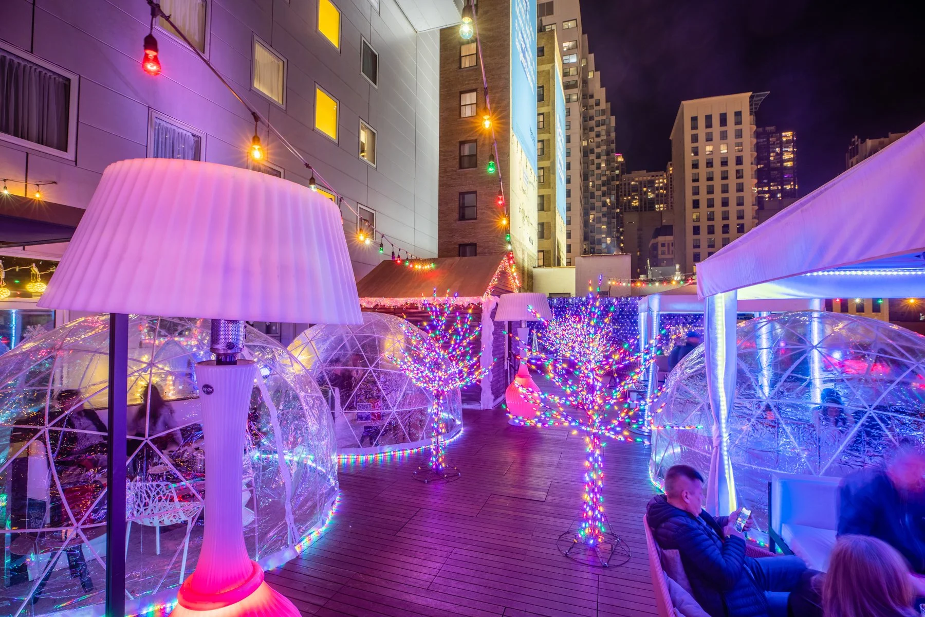 Although roof-top bars are year round, there are many of them that get into the holiday spirit with decorating the atmosphere with tons of Christmas decorations, and some even have specialty drinks that go along with Christmas. Here are some bars we heard good things about: