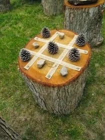 DIY Tic Tac Toe! This is perfect to get children learning how to play tic tac toe. This game is simple for children to comprehend and can incorporate their fine and gross motor skills. Let the children pick the object they’re using for the game and let them run around and explore to get the gaming pieces to use.
