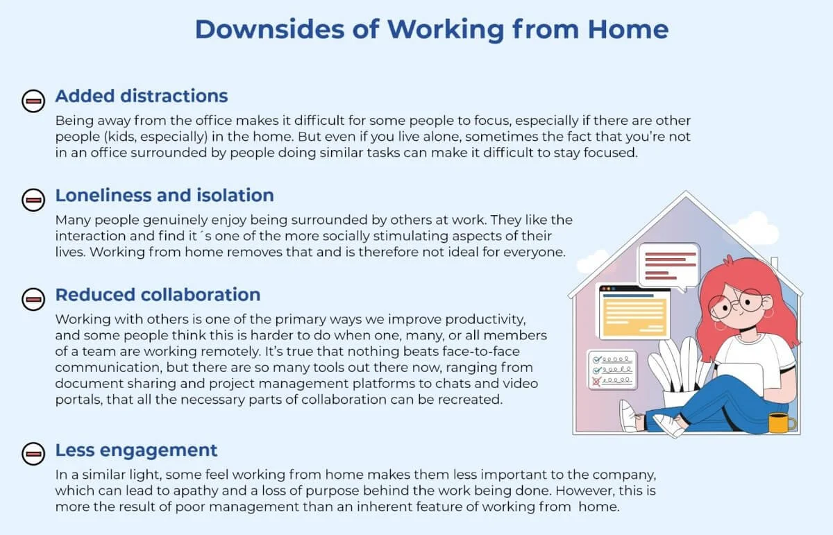 While working from home can have some pretty substantial positive impacts on life, there are also some downsides, such as: