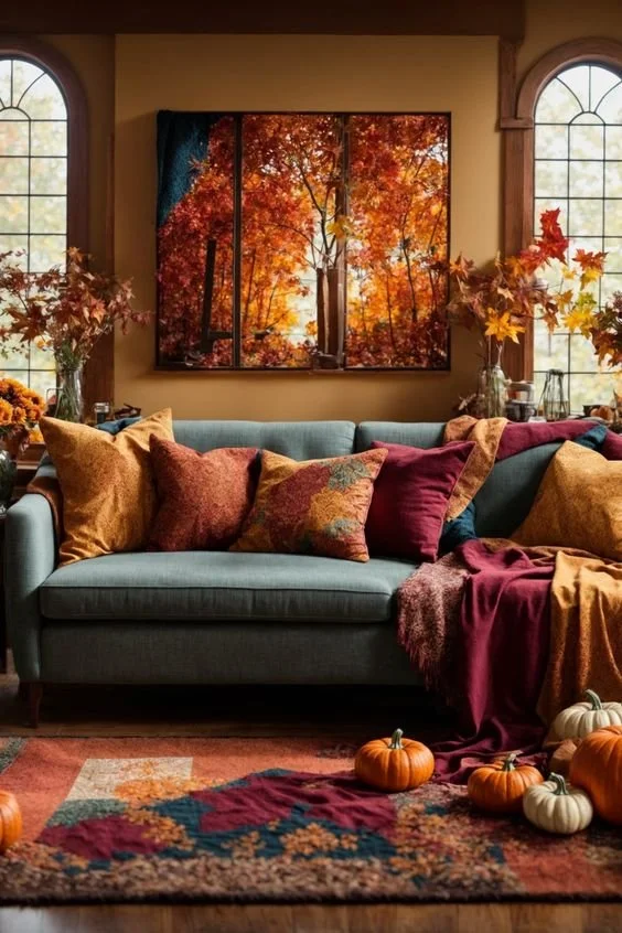 To create a comfortable and inviting atmosphere, introduce cozy textiles throughout your home. Layer your sofas and chairs with plush throw blankets and decorative pillows in autumn hues. Consider using tablecloths and cloth napkins with autumn-inspired patterns or colors to enhance the warmth and charm of your dining space.