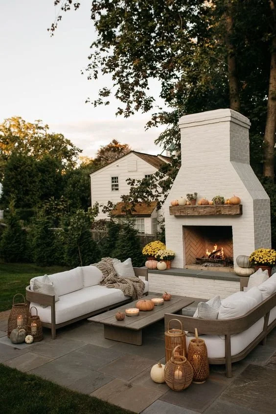 To fully enjoy your fall landscape, create cozy outdoor seating areas that invite you to spend time outdoors even as the temperature drops. Arrange comfortable chairs or benches around a fire pit or outdoor heater. Enhance the setting with warm blankets and cushions in autumnal colors to make the space inviting and comfortable.