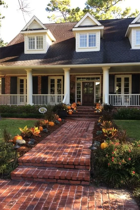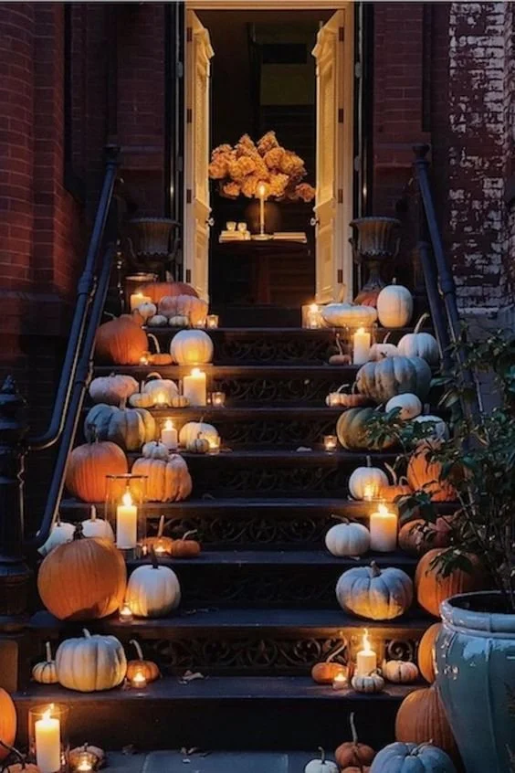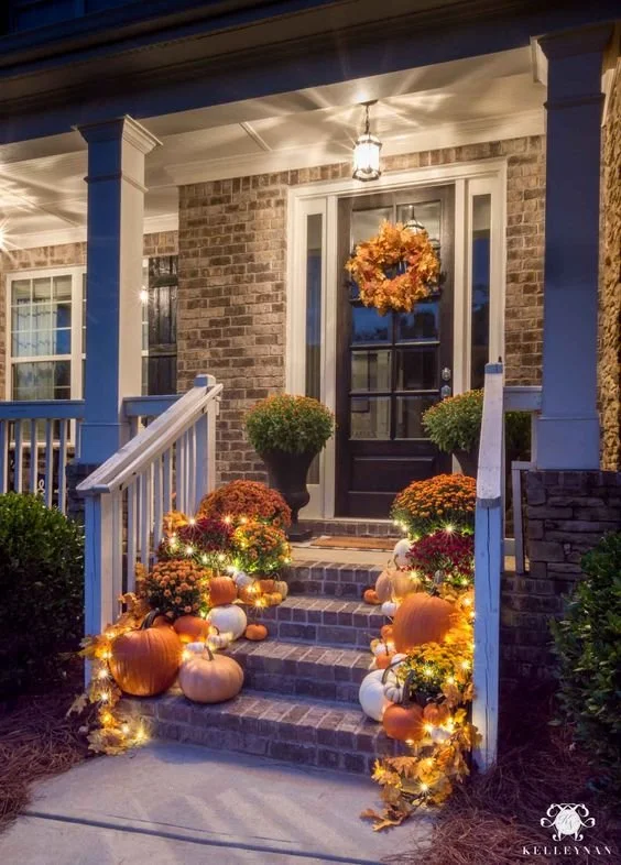 Nothing says fall like pumpkins and gourds. Place them on your porch steps, along pathways, or even on window sills. You can also get creative with different shapes, sizes, and colors to match your overall design theme.