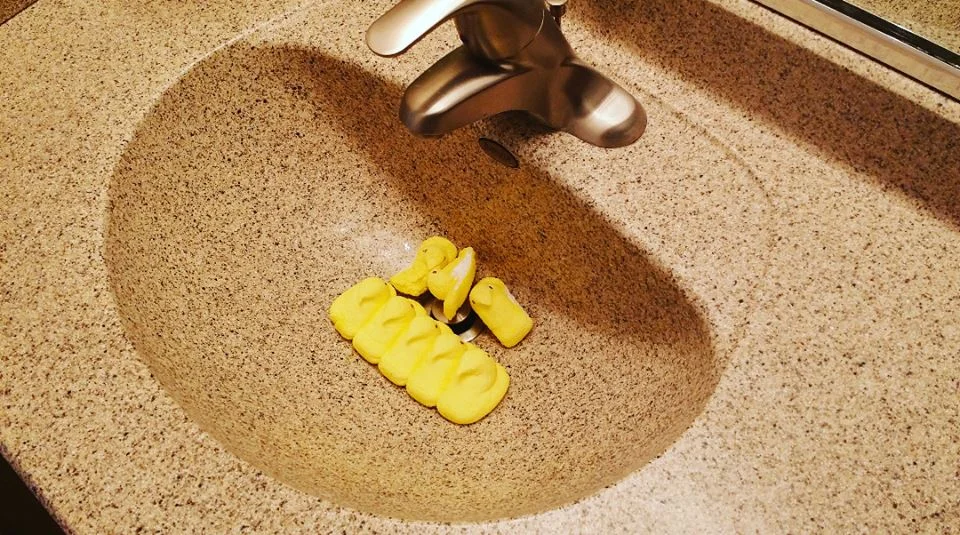 Once a upon a time, in a far far land called Tinley Park, a local Plumber's son threw his Easter Marshmallow Peeps on the floor after deciding he didn't want them anymore. The stickiness of the peeps completely aggravated him. They taste like crap, they don't do anything, and his son doesn't even want to play with them, "What does one do with a Peep?" asked the Plumber. After short research the Plumber realized that Peeps aren't good for anything, he decided to get rid of them.
